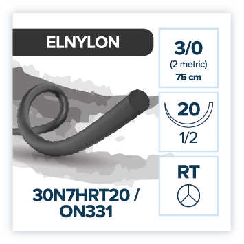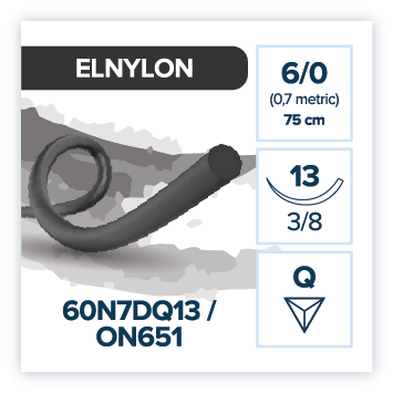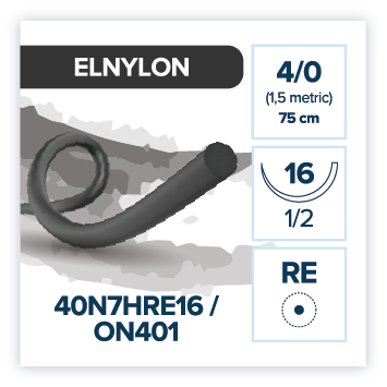ELNYLON — мононить, окрашена в черный цвет для лучшей визуализации в зоне операции, превосходит по эластичности полипропиленовую нить. Компенсирует умеренно выраженный послеоперационный отек и сохраняет состоятельность после купирования процесса.
