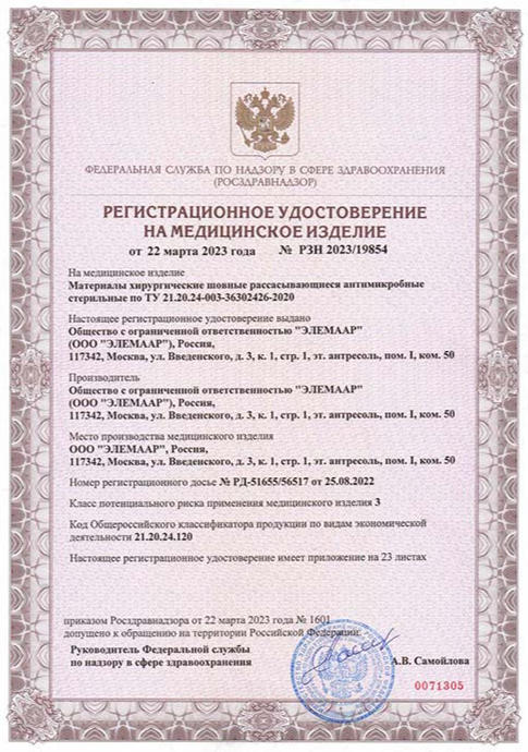 «Материалы хирургические шовные рассасывающиеся антимикробные стерильные»
