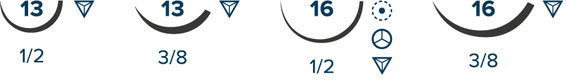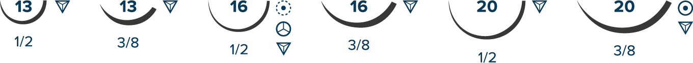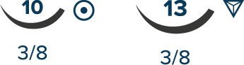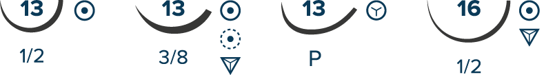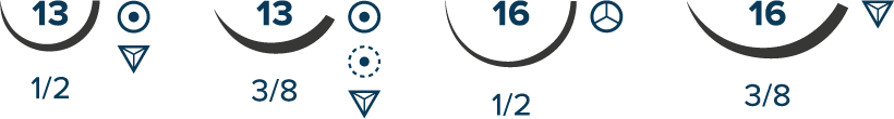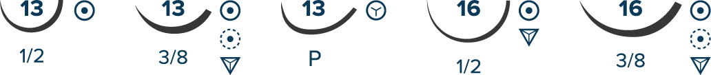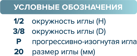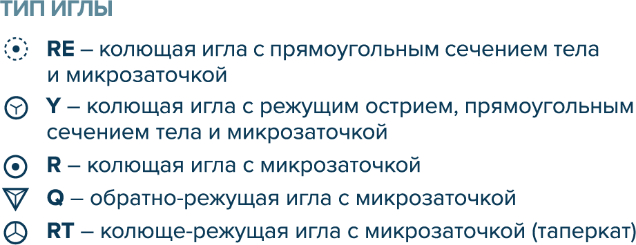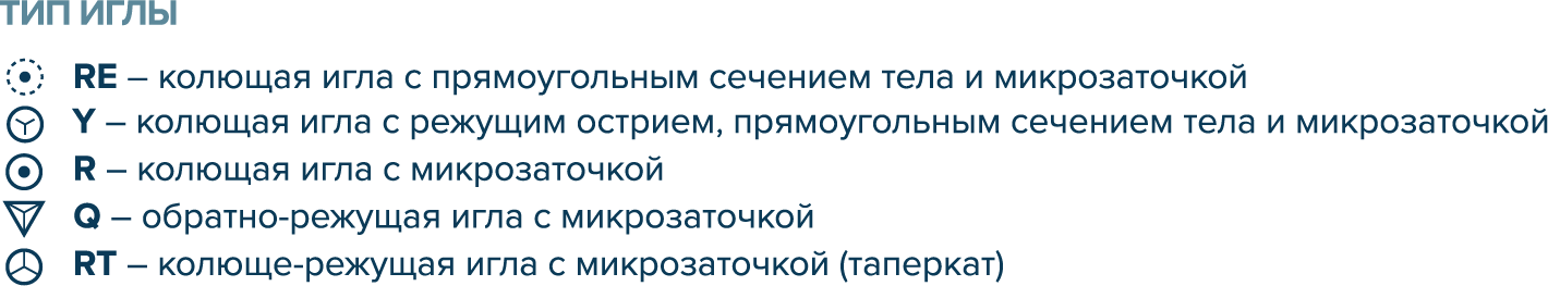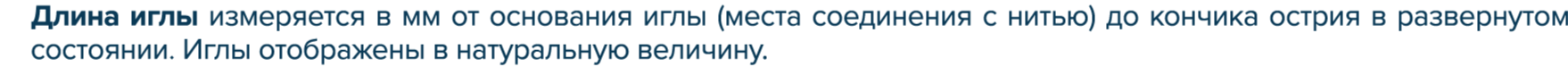 Длина иглы измеряется в мм от основания иглы (места соединения с нитью) до кончика острия в развернутом состоянии. Иглы отображены в натуральную величину.