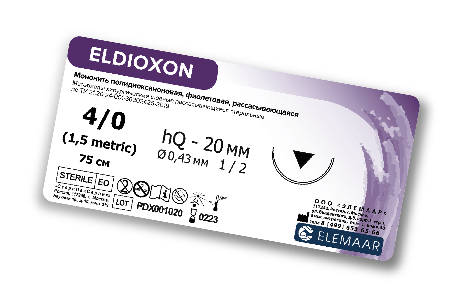 ELDIOXON сохраняет до 50% первоначальной прочности 35−42 дня. Абсорбция незначительна до 90-го послеоперационного дня, происходит постепенная замена вновь образовавшейся фиброзной соединительной тканью. Полное рассасывание занимает примерно 6 месяцев (180−210 дней).