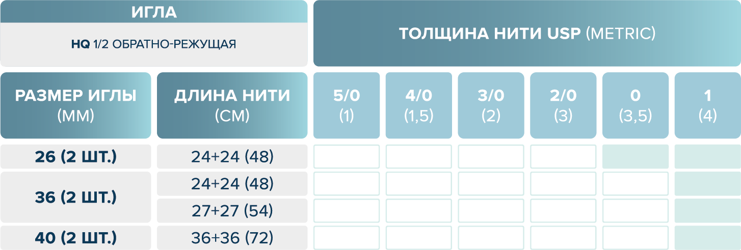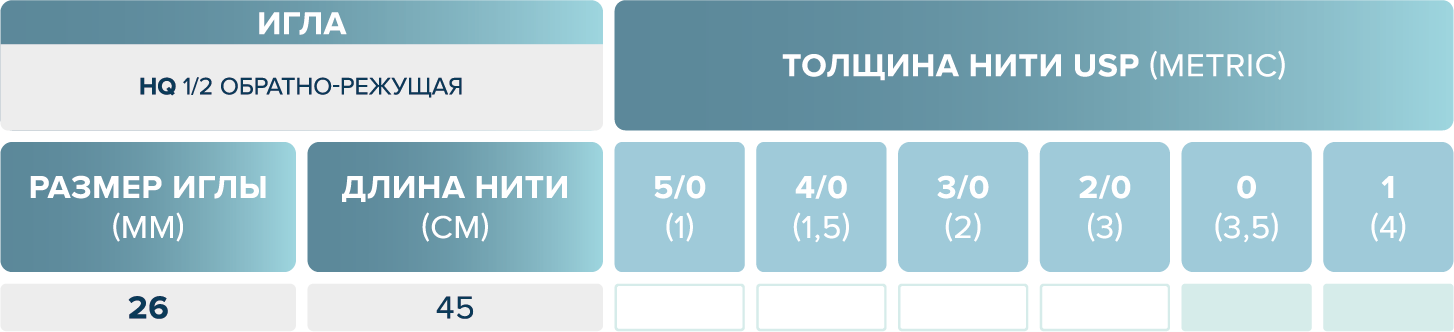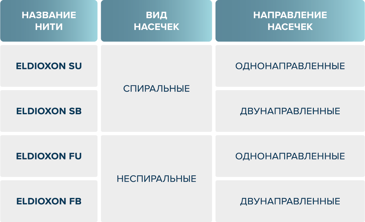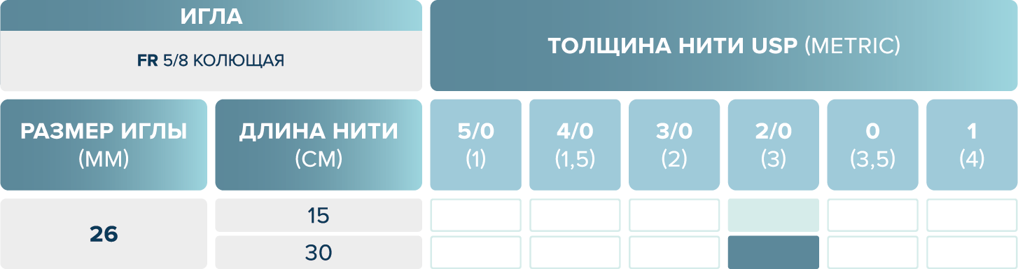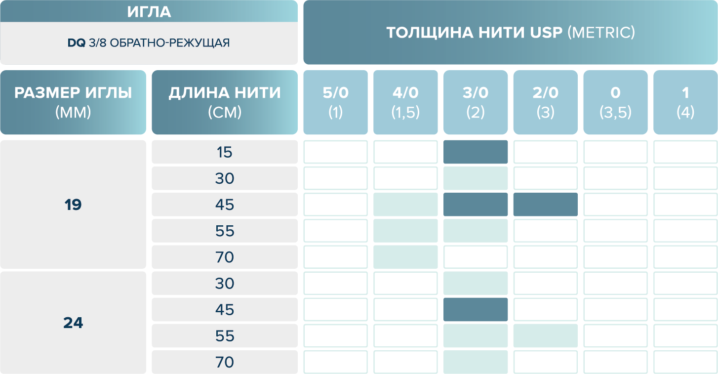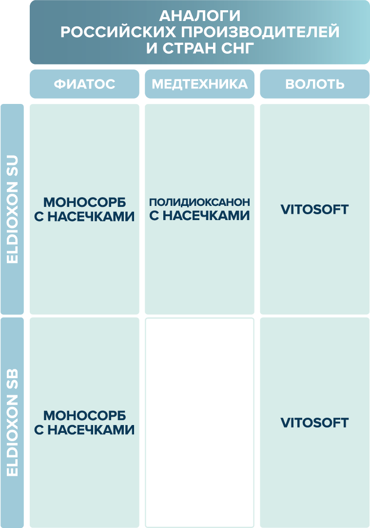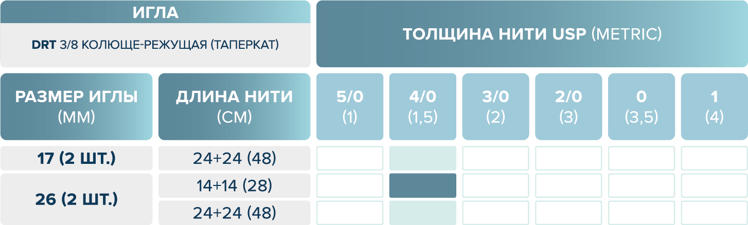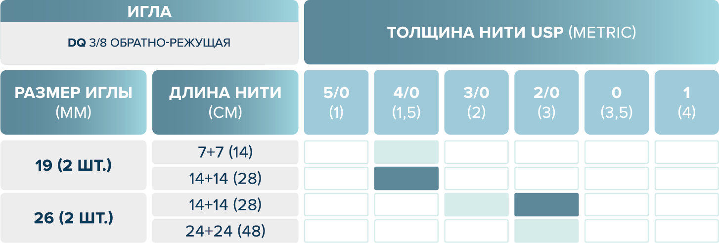 размерный ряд шовного материала eldioxon su