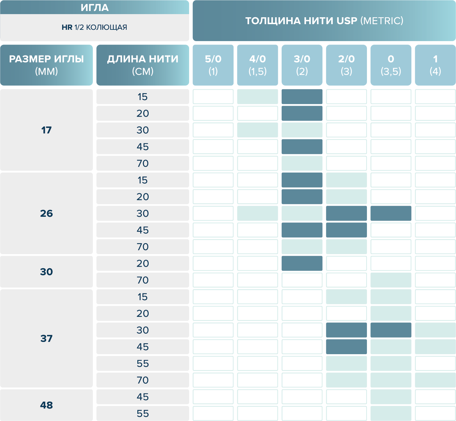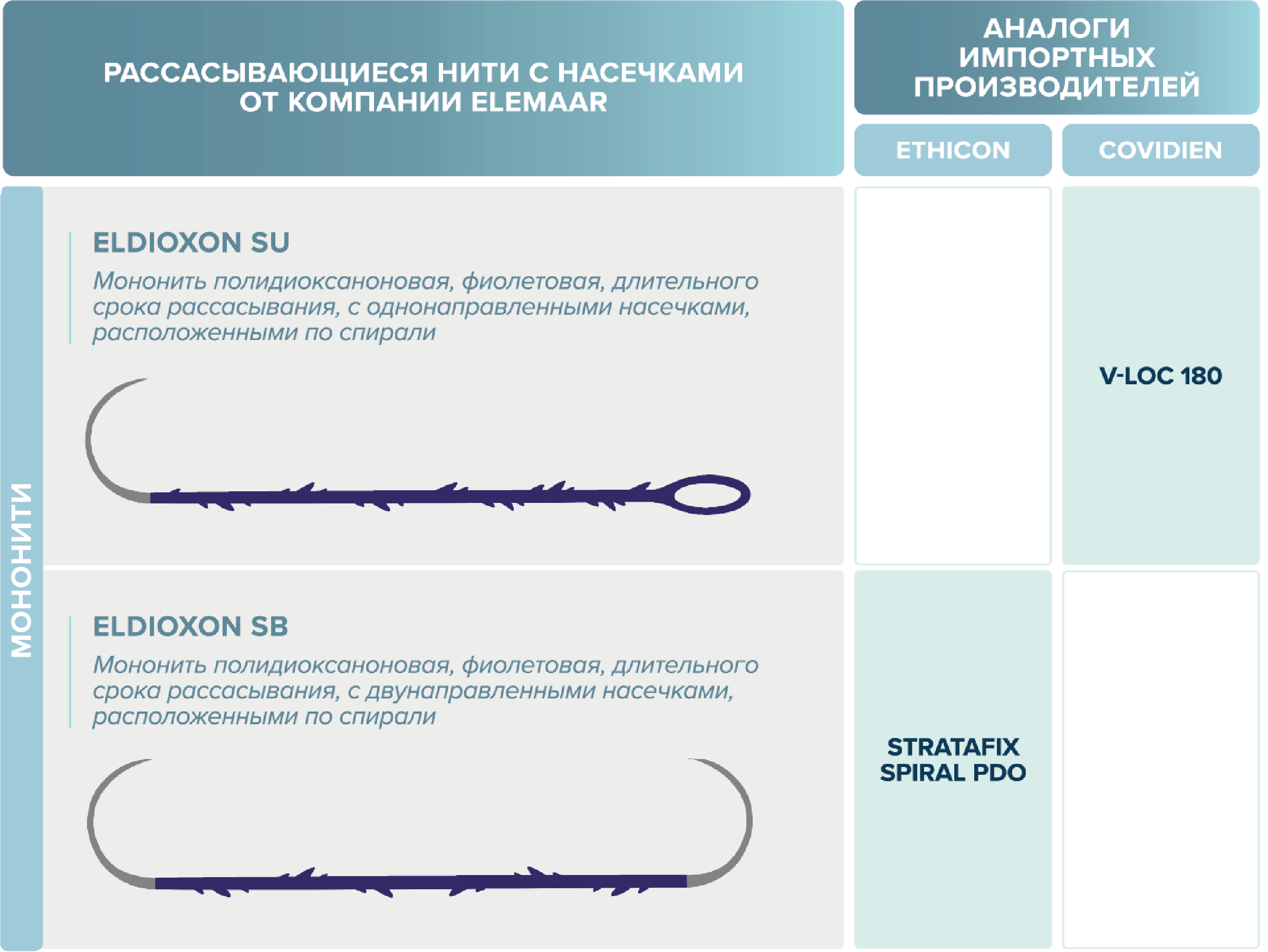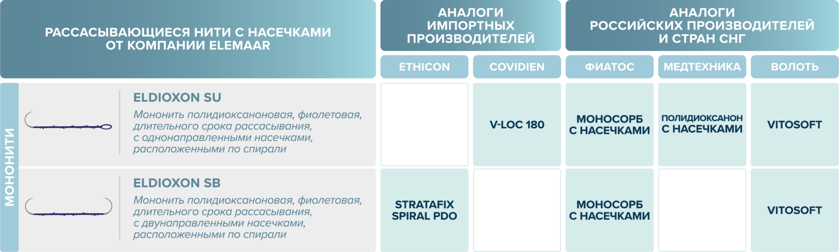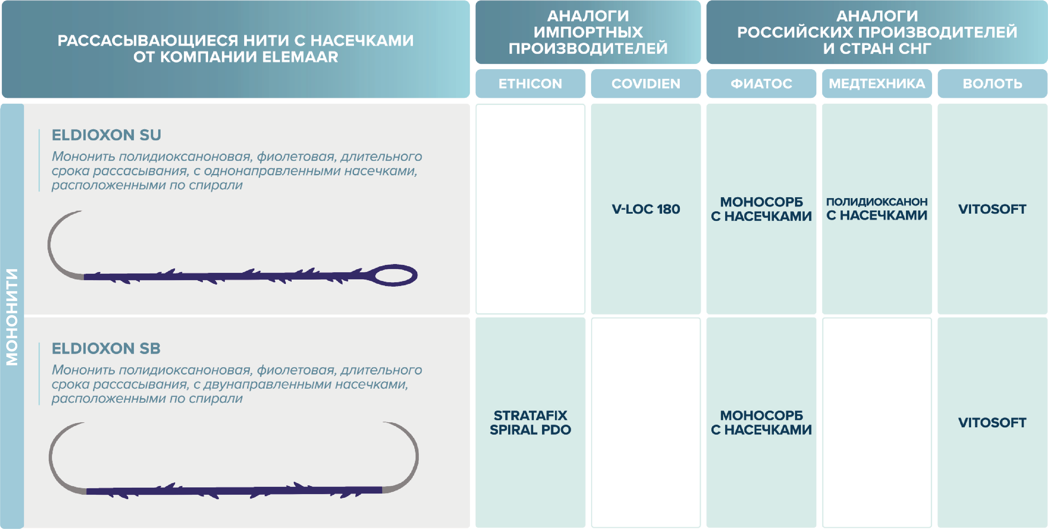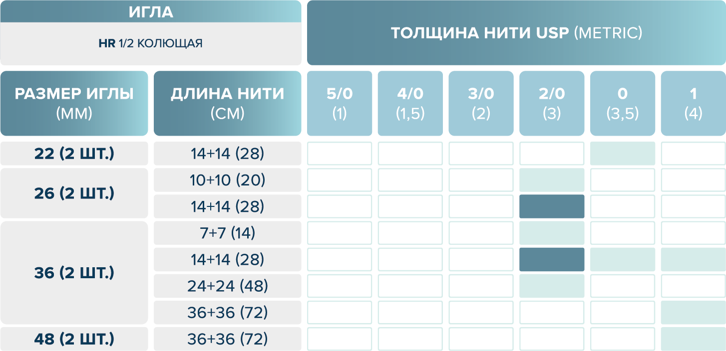 размерный ряд шовного материала eldioxon su
